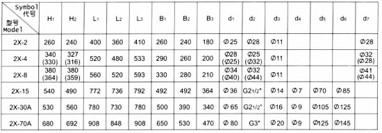 | 2X-2 | 2X-4 | 2X-8 | 2X-15 | 2X-30 | 2X-70 | |
